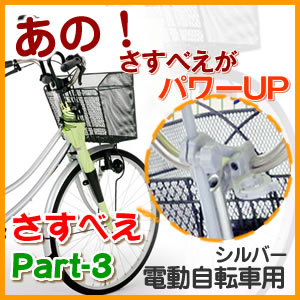 さすべえに傘ポケットが付いたら さらに便利に! さすべえPART-3 シルバー 従来のさすべえに、傘の便利ポケット機能を追加しました!ワンタッチで傘を自転車に収納し、突然の雨でも安心してお出かけできるように常に自転車に傘をキープしておくことができます。